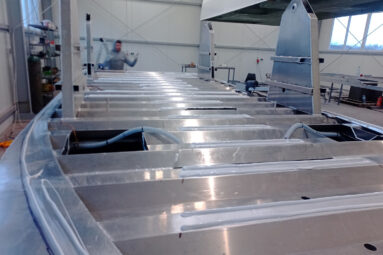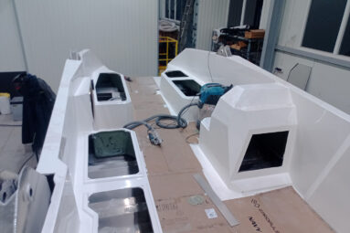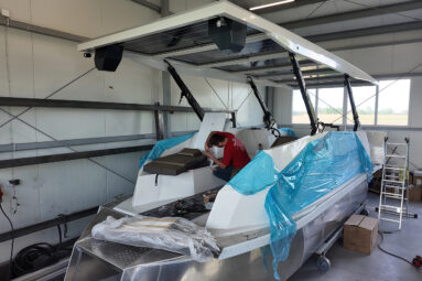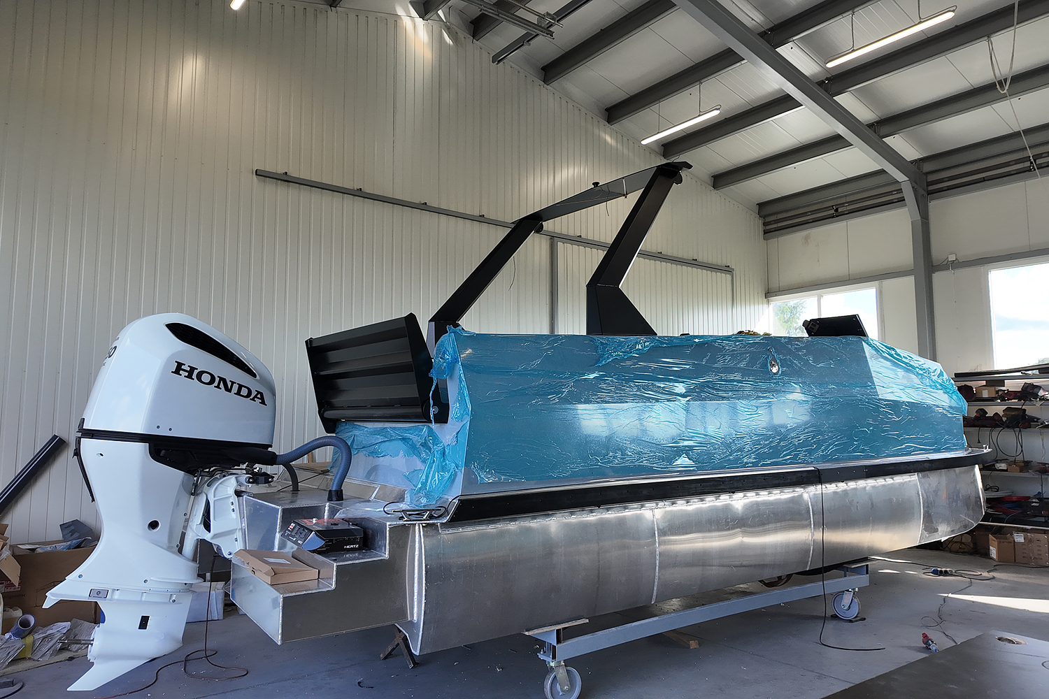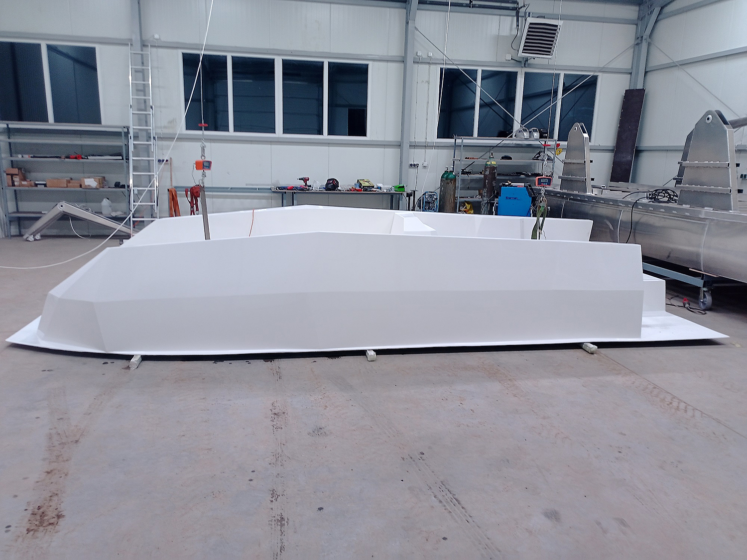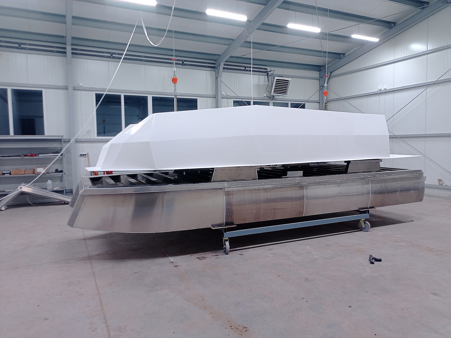 Nasze katamarany powstają z myślą o trwałości, wytrzymałości i wydajności. Dlatego sięgamy po sprawdzone, mocne i lekkie materiały: aluminium na dno oraz laminaty poliestrowo-szklane na pokłady.