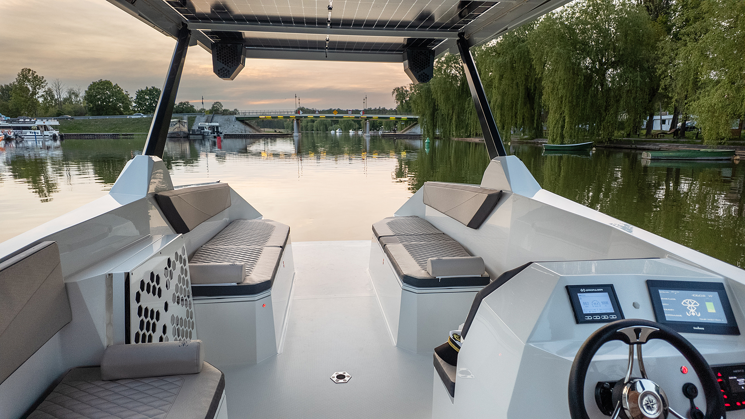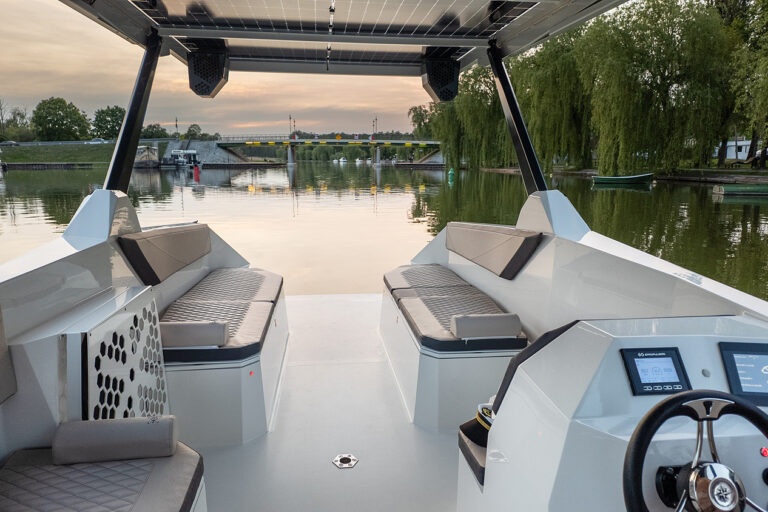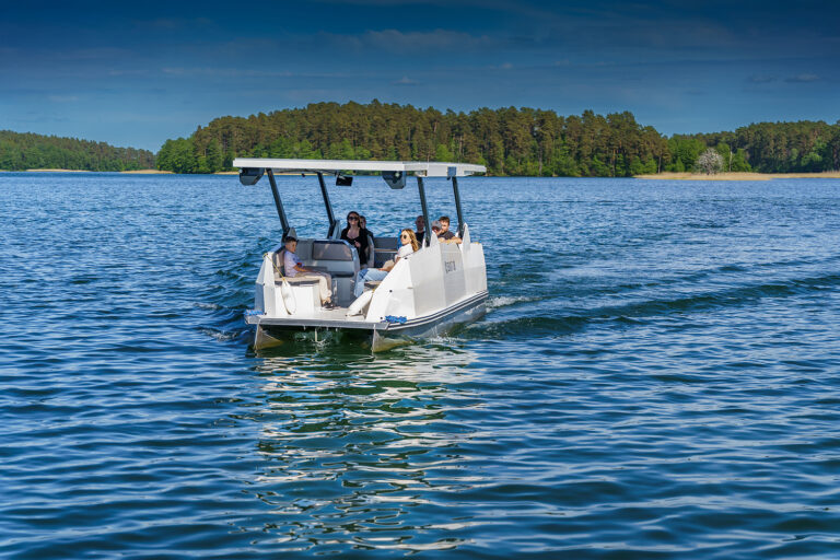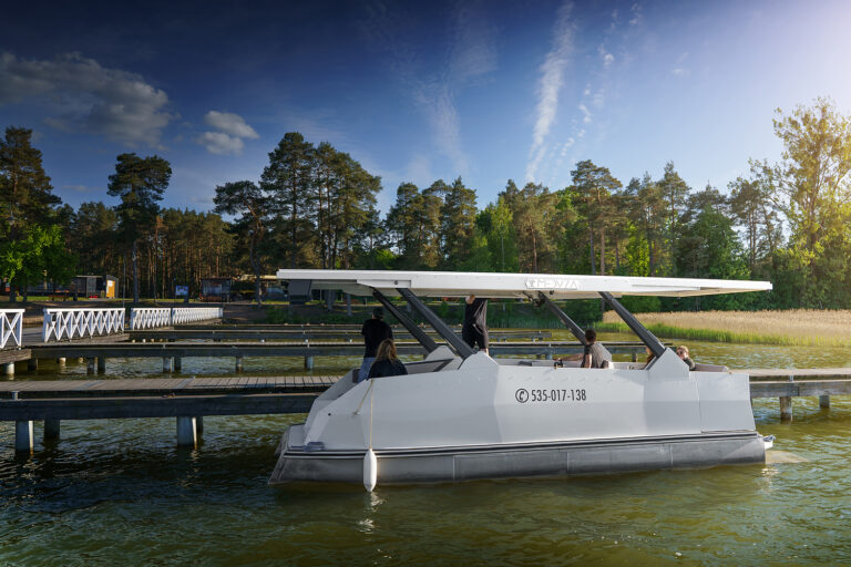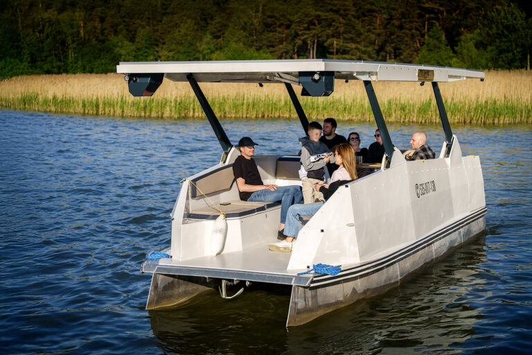 Tworzenie nowoczesnych katamaranów elektrycznych to dla nas nie praca, a czysta przyjemność – trochę jak projektowanie sportowego auta, które potrafi pływać. Każdy detal ma znaczenie: od paneli fotowoltaicznych łapiących słońce jak surfer idealną falę, po systemy sterowania dotykiem, które sprawiają, że obsługa jest prostsza niż zamówienie kawy w aplikacji. Nasze patenty? Inteligentne oświetlenie, które wie, kiedy zrobić klimat, kamery, które czuwają przy parkowaniu, i dach, który zamyka się szybciej niż powiesz „burza!”. Wierzymy, że luksus to nie tylko wygląd, ale też cisza – dlatego zero spalin i hałasu. Wypożyczając nasze katamarany, dostajesz nie tylko łódź, ale też doświadczenie, które pachnie nowoczesnością i smakuje wolnością. My dostarczamy technologię, Ty dostarczasz uśmiech – i razem tworzymy rejs, o którym będziesz opowiadać długo po zejściu na ląd.